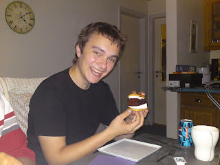 Steffen laver dessert Posted 2009-08-08 by JamTheMan Idag, på fars fødselsdag (Tillykke du gamle :-D) lavede Steffen en helt fantastisk dessert til sig selv: Pandekage Is Brownix Is Pandekage