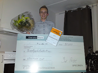 Og nu til hvad hele historien drejer sig om, præmien. Vi endte nemlig på tredjepladsen i konkurrencen, hvilket gjorde os fortjente til at vinde 10.000 danske spir. Ikke dårligt for en tre siders rapport og 3 minutters fremlæggelse hvis jeg selv skal sige det. Vi havde slet ikke regnet med at have den mindste chance mod de mange hold fra Aarhus School of Business i en forretningsplanskonkurrence, så da vores navn blev råbt op så vi lige så overraskede ud som vi burde. Det var en fed følelse og vi fik meget ud af oplevelsen…