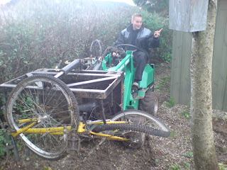 Som det ses på billederne fik vi rigtig lavet en masse arbejde og brugt stort set alle de maskiner vi kunne finde på, lige fra min gamle cykel til Hoekcs traktor var indblandet. Men det var en rigtig god dag med dejlig meget arbejde. Det hele blev belønnet med mUlla´s mad hele dagen og så var alle vi hårdtarbejdende (og Tine) ude at bowle om aftenen. Det var en god dag, og når der engang skal grus etc på så ringer jeg igen ;)