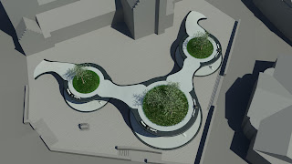 Jeg havde i sidste semester et fag der hed 3D Modellering i Design og Formidling, som gik ud på at vi skulle lære at arbejde i 3D Studio MAX og lave et projekt heri. Mere konkret lød opgaven på at vi skulle re-designe området ved Bispetorvet midt i Århus by. Området er i dag en stor parkeringsplads, som kommunen gerne så ændret til noget mere spændende, hvilket der blev udskrevet en offentlig konkurrence om for et par år siden. Og det var så denne konkurrence vi skulle tage op igen og komme med et bud på en løsning til, dog uden den begrænsning at det skulle være realistisk…