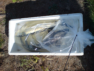 Mandag var jeg på arbejde og var stadig lidt ramt af lørdagens bytur efterfulgt af søndagens arbejde. Selvom det var anden påskedag var der ikke særligt mange gæster i parken, så Mik og jeg fandt på lidt forskellige løjer med lidt flydende kvælstof. Vores første projekt var at se hvad der sker hvis man sprænger en kvæltofbombe begravet i dybt sand. Det var dog ikke den store succes, da alt det sand vi havde smit oven på flasken i det næsten 1m dybe hul tog alt effekten ud af eksplosionen og det eneste vi fik ud af det var et lille hult bump. Senere på dagen gik vi så igang med at forsøge at gøre vores normale vandraket vildere ved at tilføje kvælstoffens eksplosive effekt, og det gik heftigt for sig. Det var så vildt og gik så hurtigt at jeg hverken nåede at få billeder eller video af det, men når vi engang får det under kontrol kommer der selvfølgelig noget op om det. Til sidst på dagen prøvede vi så at sprænge en flaske kun lige dækket i sand og det gav en meget federe effekt: